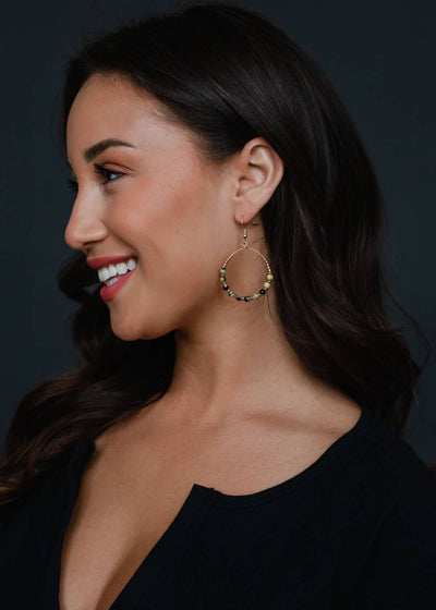 Gold Wire Dangle Hoop Earrings - Lt. Green