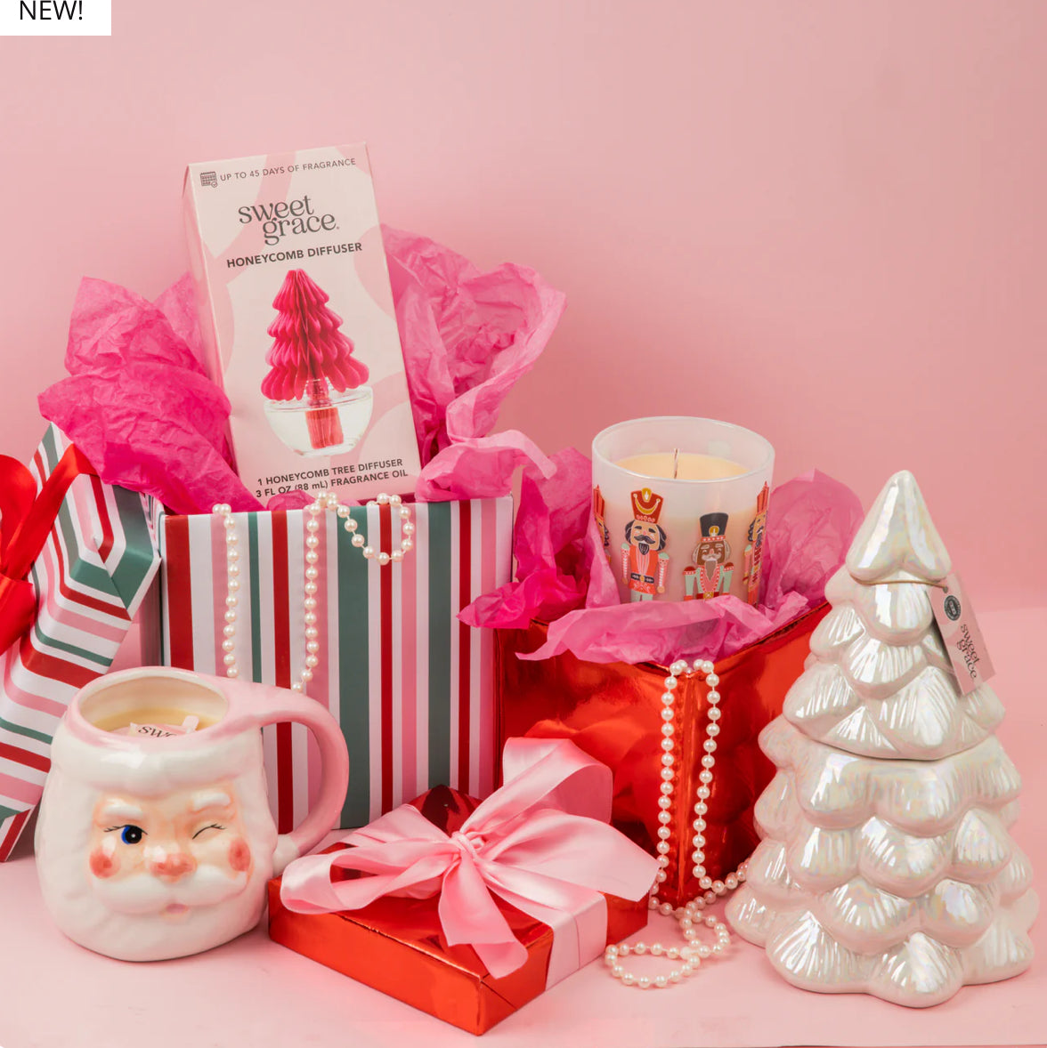 Nothing says “Merry Christmas” like Sweet Grace! The Sweet Grace Honeycomb Diffuser features a clear glass vase paired with a festive pink paper tree that absorbs the fragrance oil, gently diffusing the iconic Sweet Grace scent into the air. Enjoy up to 45 days of fragrance, then refresh with a new diffuser once the oil is absorbed and the scent fades. This whimsical diffuser makes holiday gifting easy—perfect for friends, family, teachers, and of course, yourself. With its playful design, unforgettable fragrance, the Honeycomb Diffuser is the sweetest gift of the season.