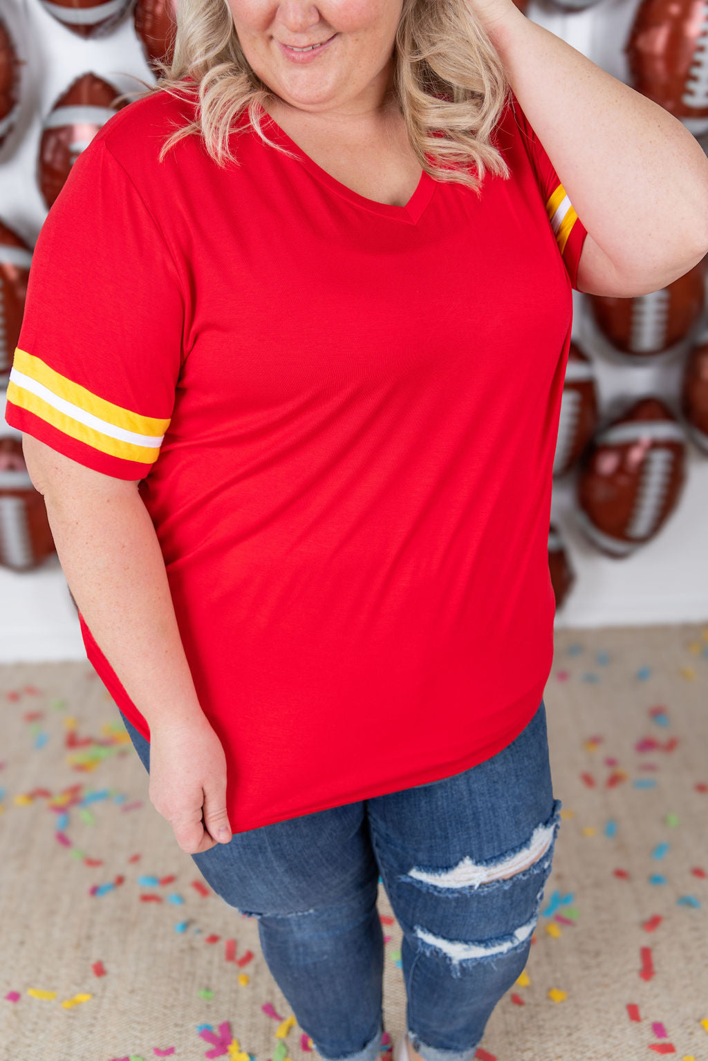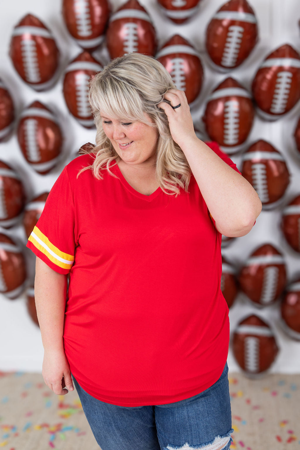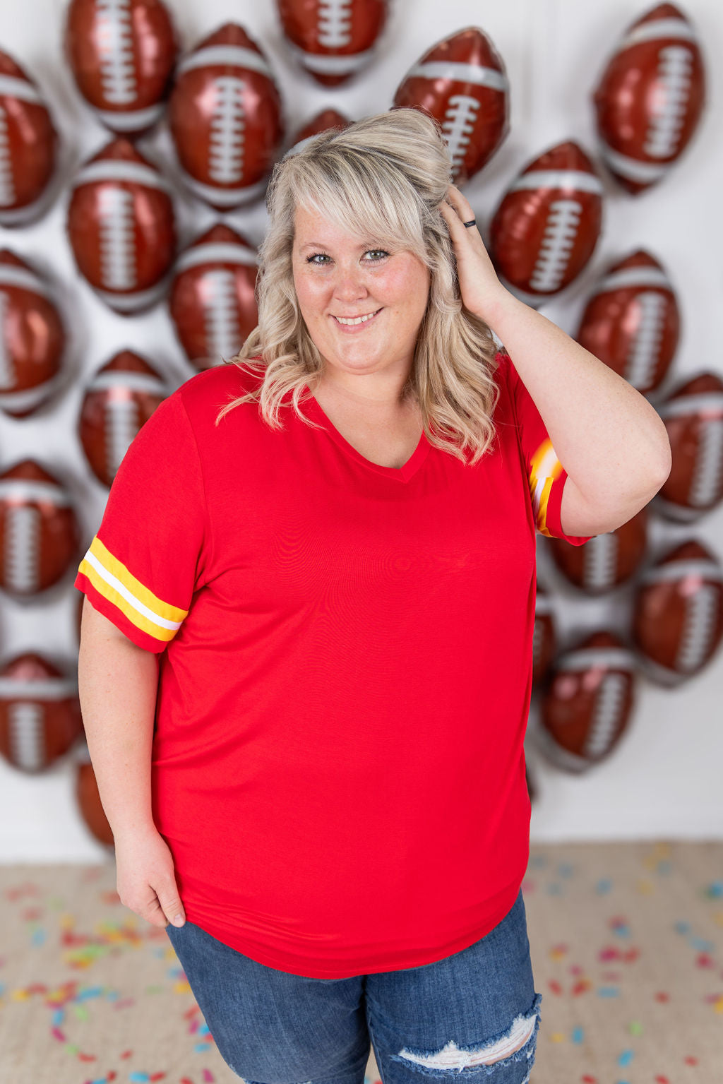 Get ready to cheer on your favorite team in style with the GameDay Tessa Short Sleeve Top! Perfect for any sports fan, this tee is the perfect addition to your game day wardrobe. Show your team spirit in these color combos!