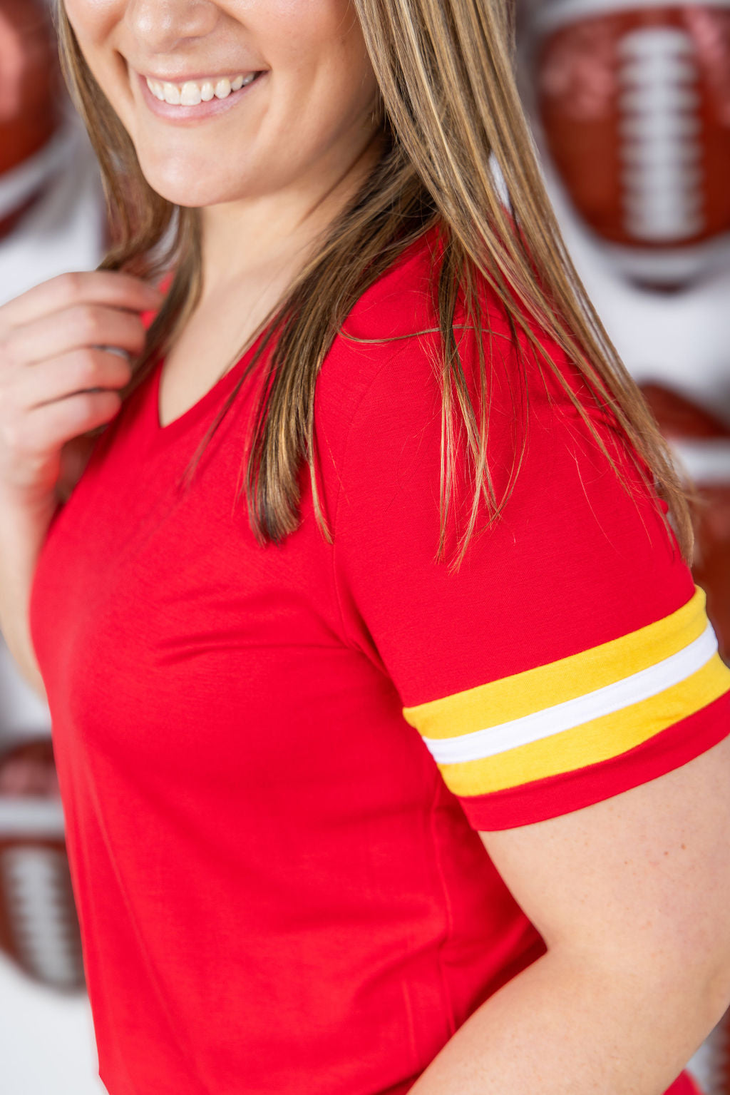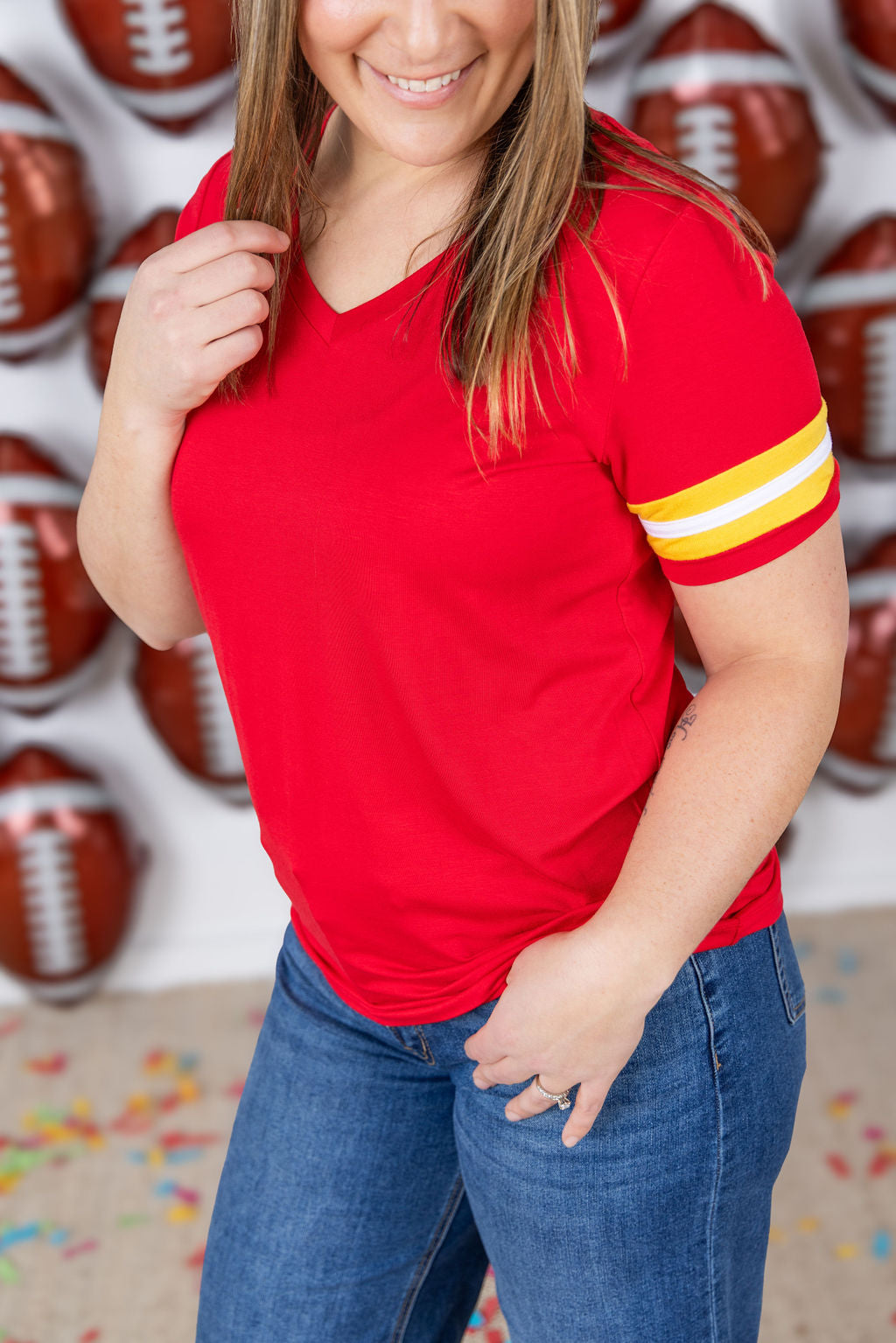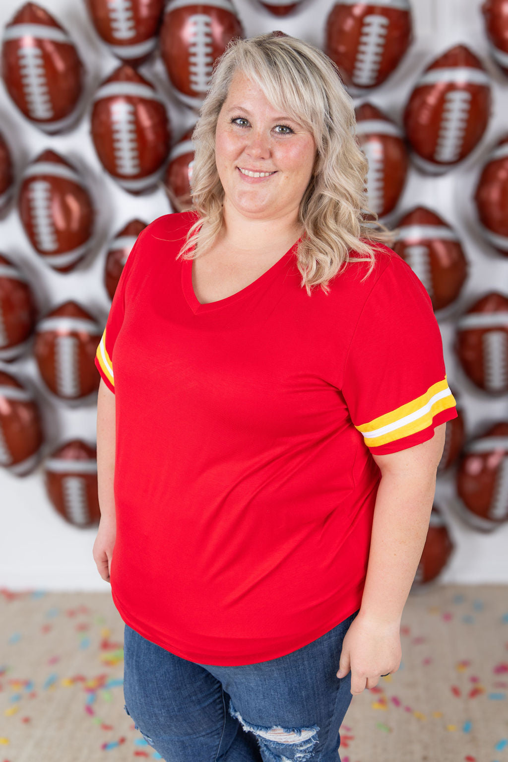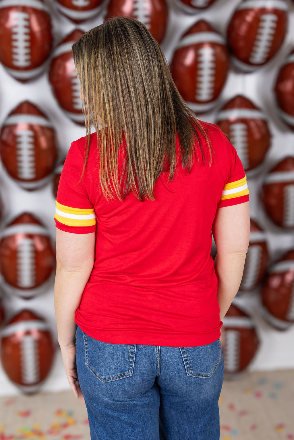 Get ready to cheer on your favorite team in style with the GameDay Tessa Short Sleeve Top! Perfect for any sports fan, this tee is the perfect addition to your game day wardrobe. Show your team spirit in these color combos!