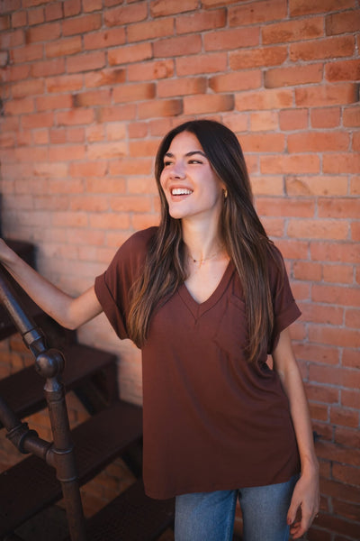 IN STOCK Whitley Waffle Snap Pullover - Brown