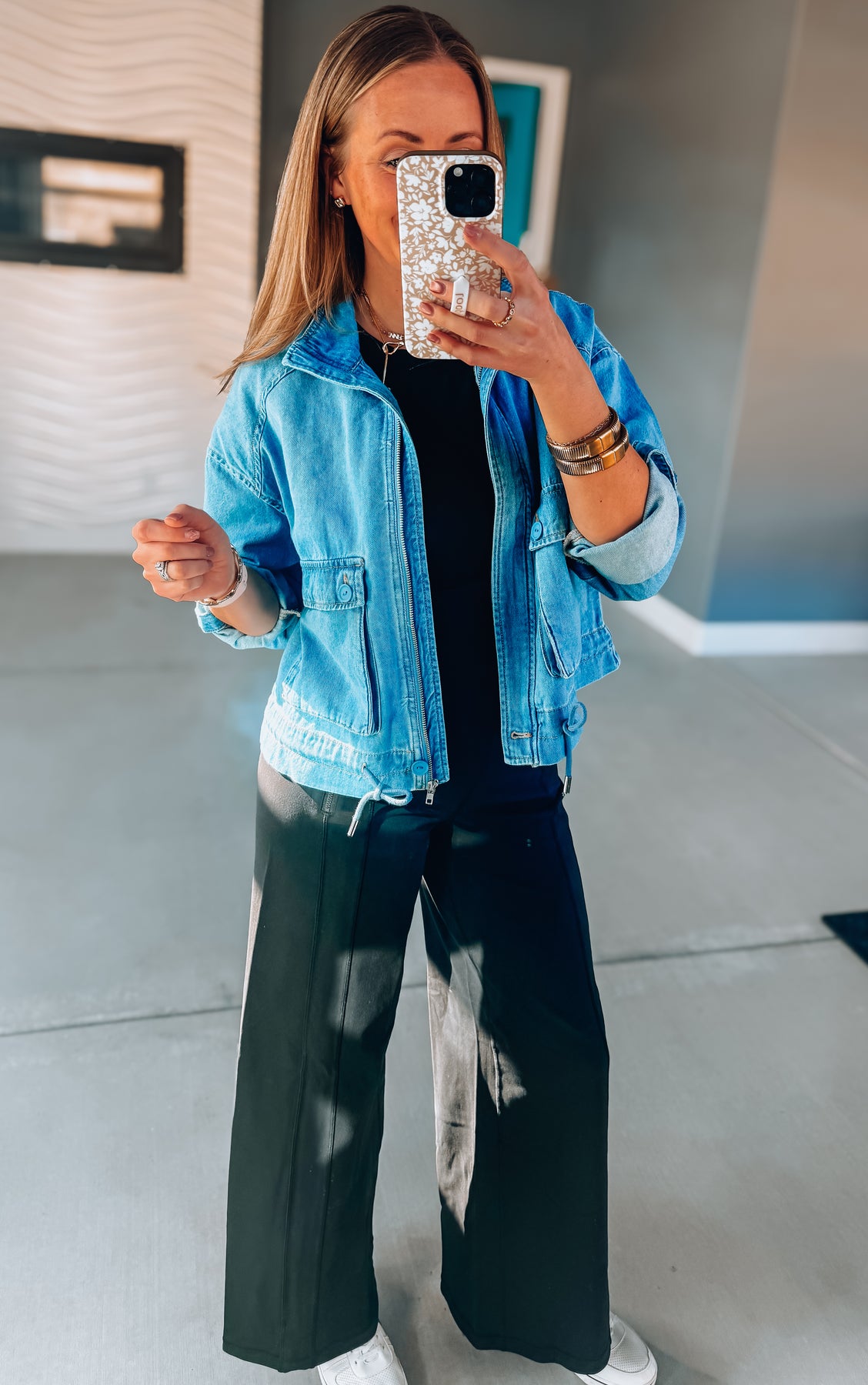 This soft-washed denim jacket features a relaxed fit, zip-front closure, functional front pockets, and an adjustable drawstring hem so you can wear it loose or slightly cinched.