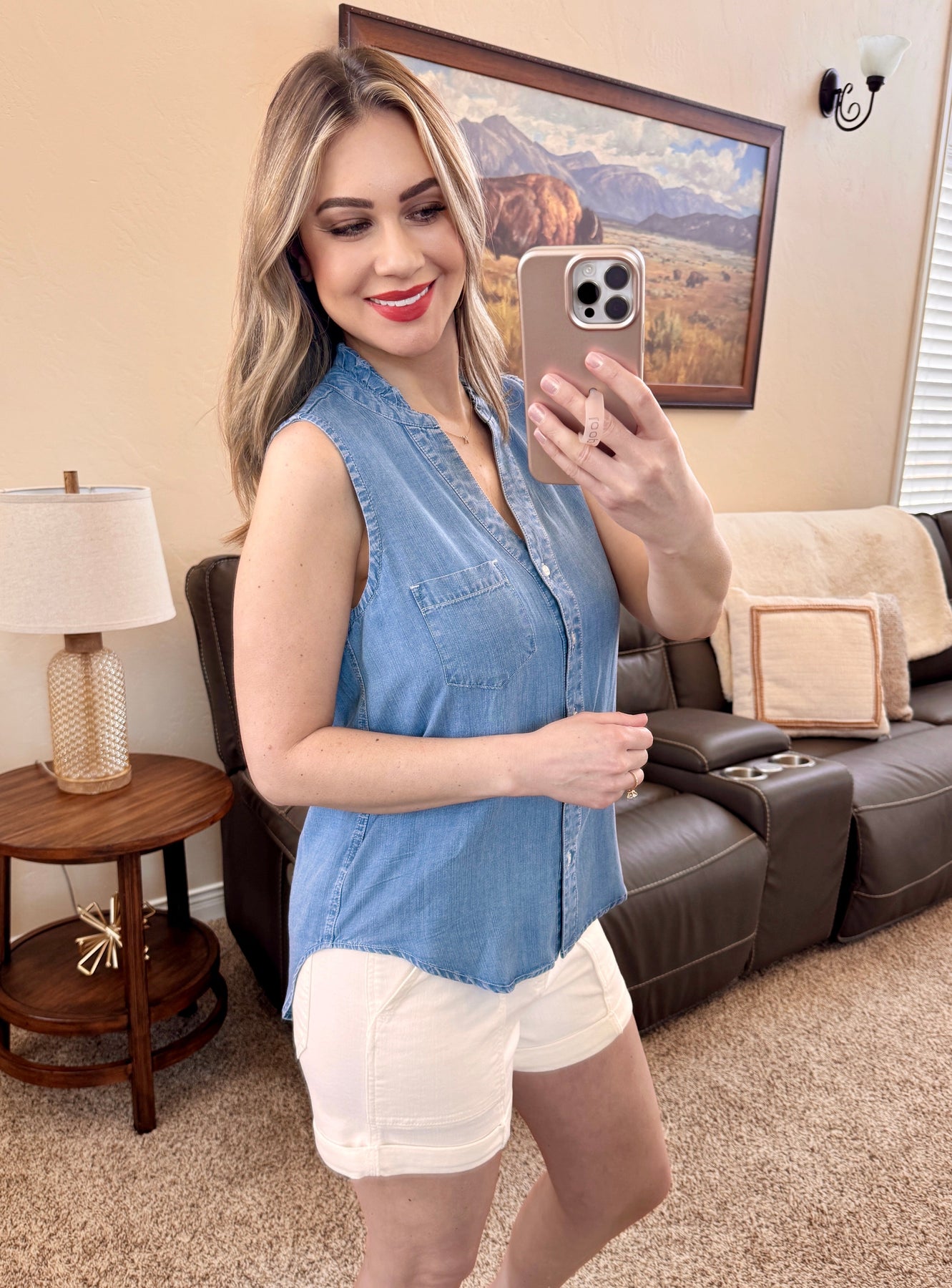 Denim Sleeveless Button Down Top
