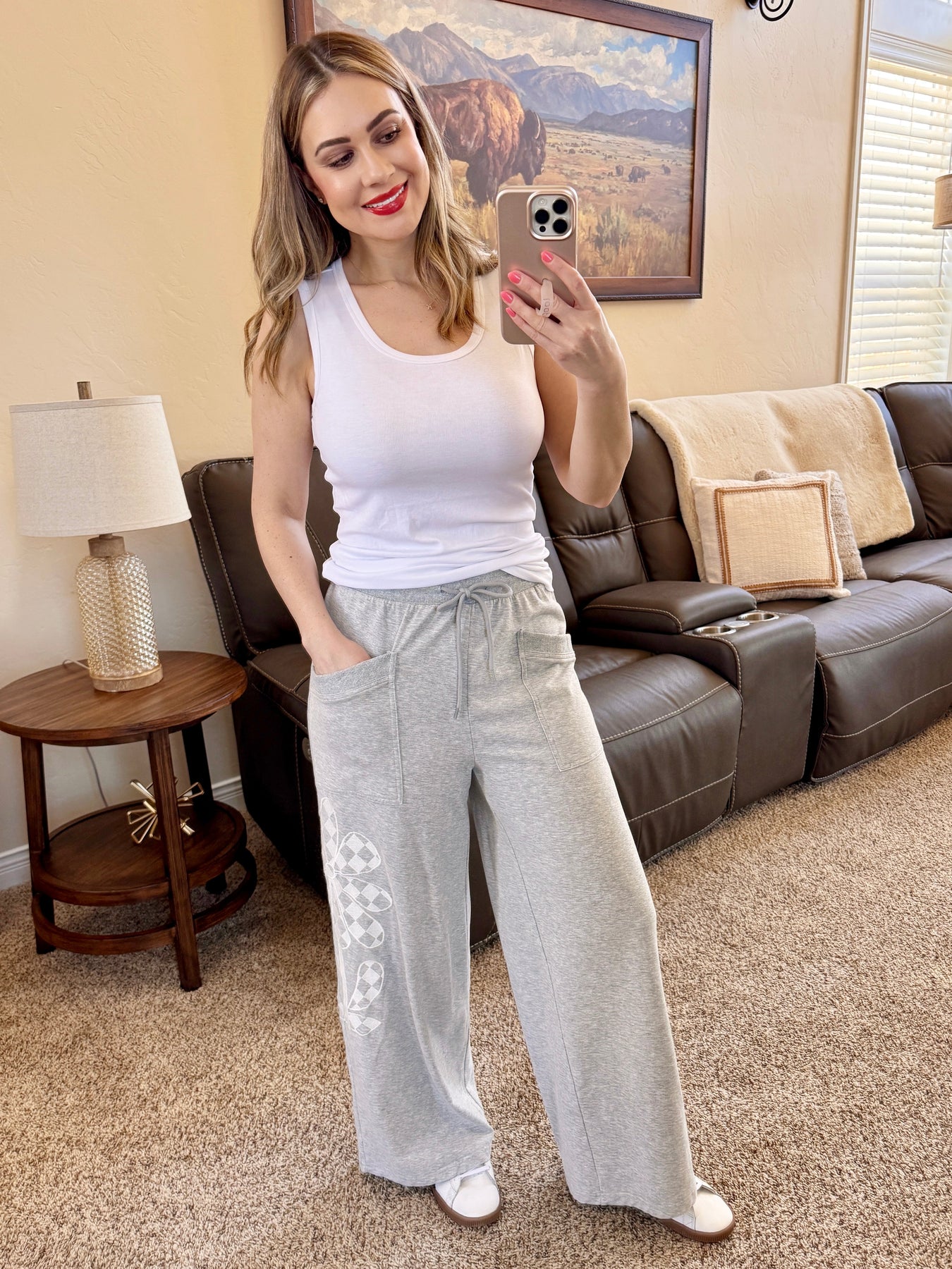Heather Grey Embroidered Lounge Pants